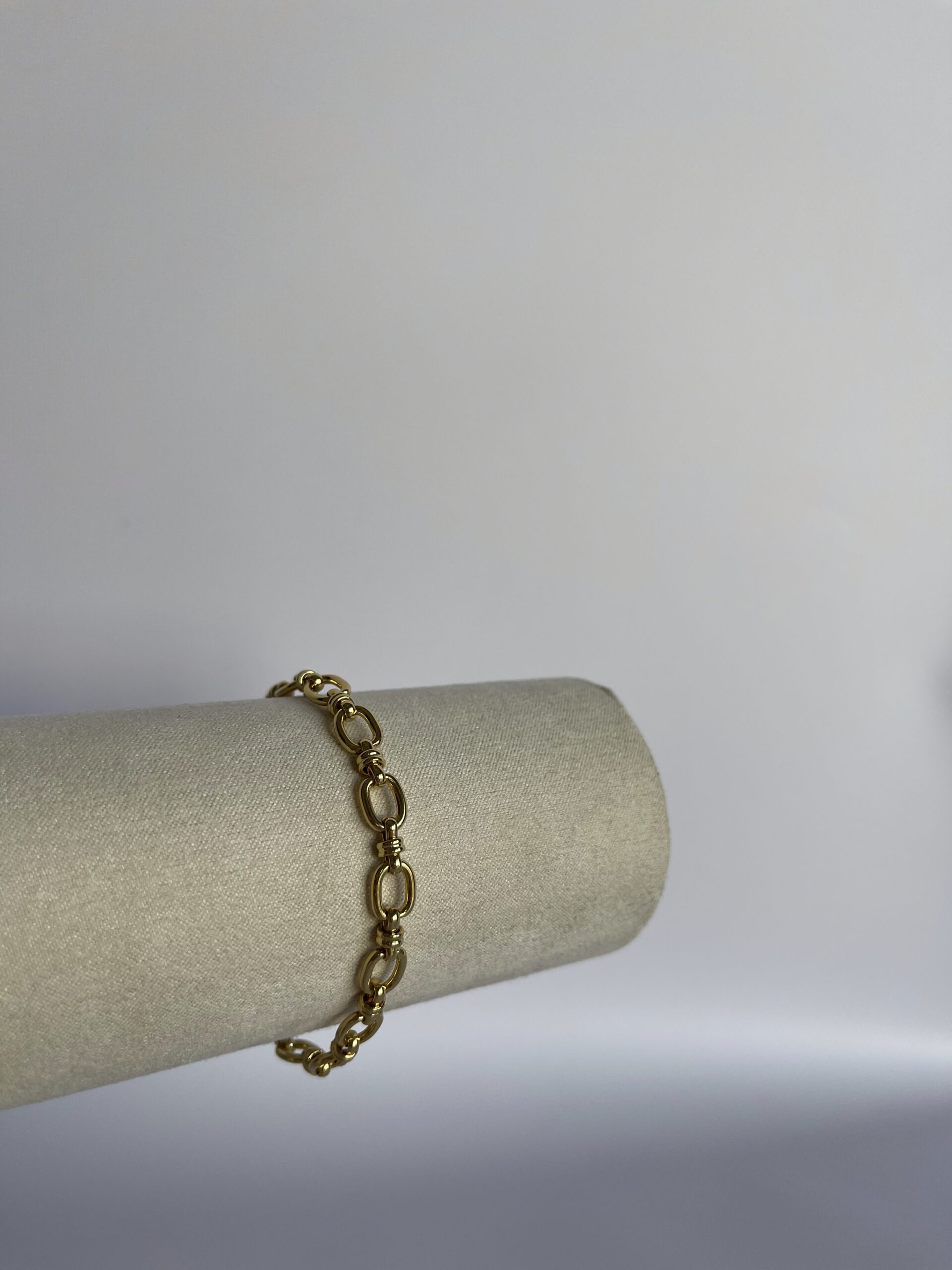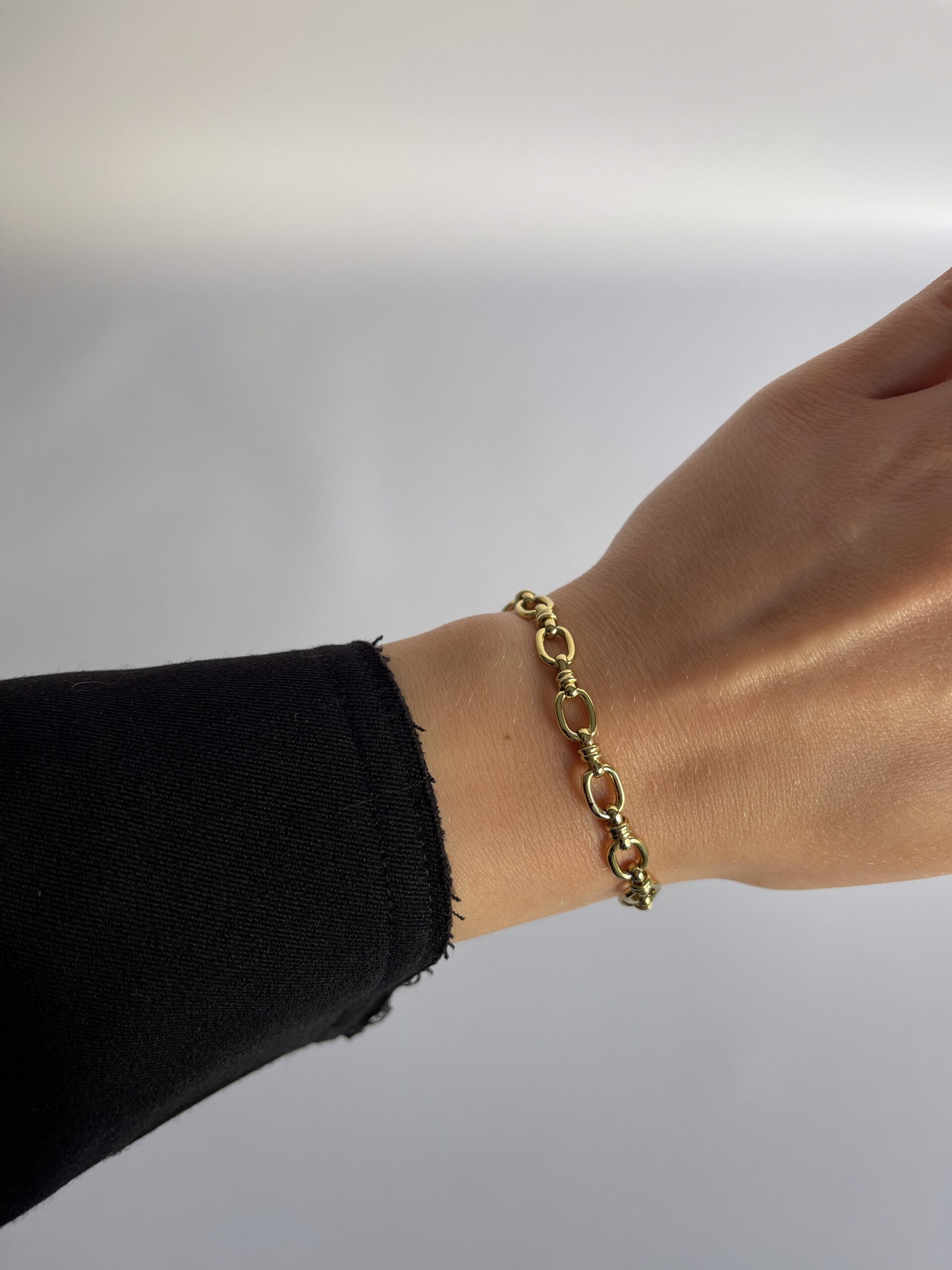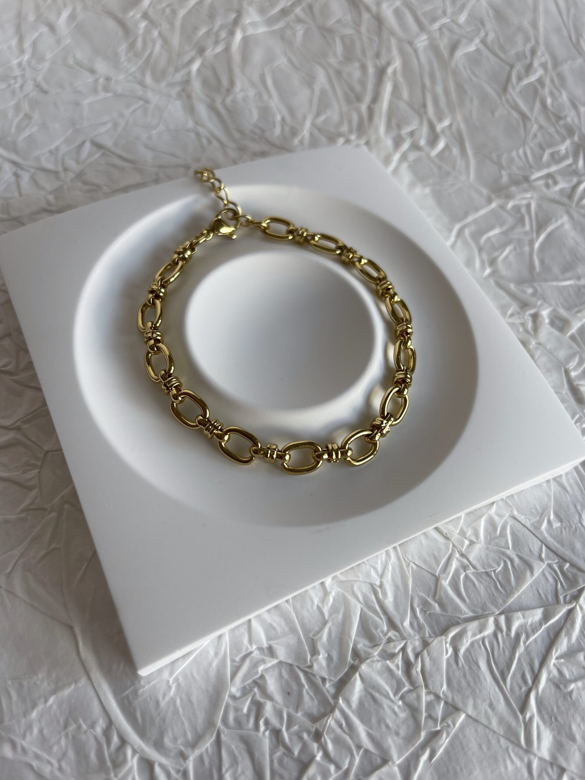 Ember Gold to bransoletka z ogniwami o nieco delikatniejszym charakterze – wyrazista, ale bardziej stonowana niż klasyczny łańcuch.