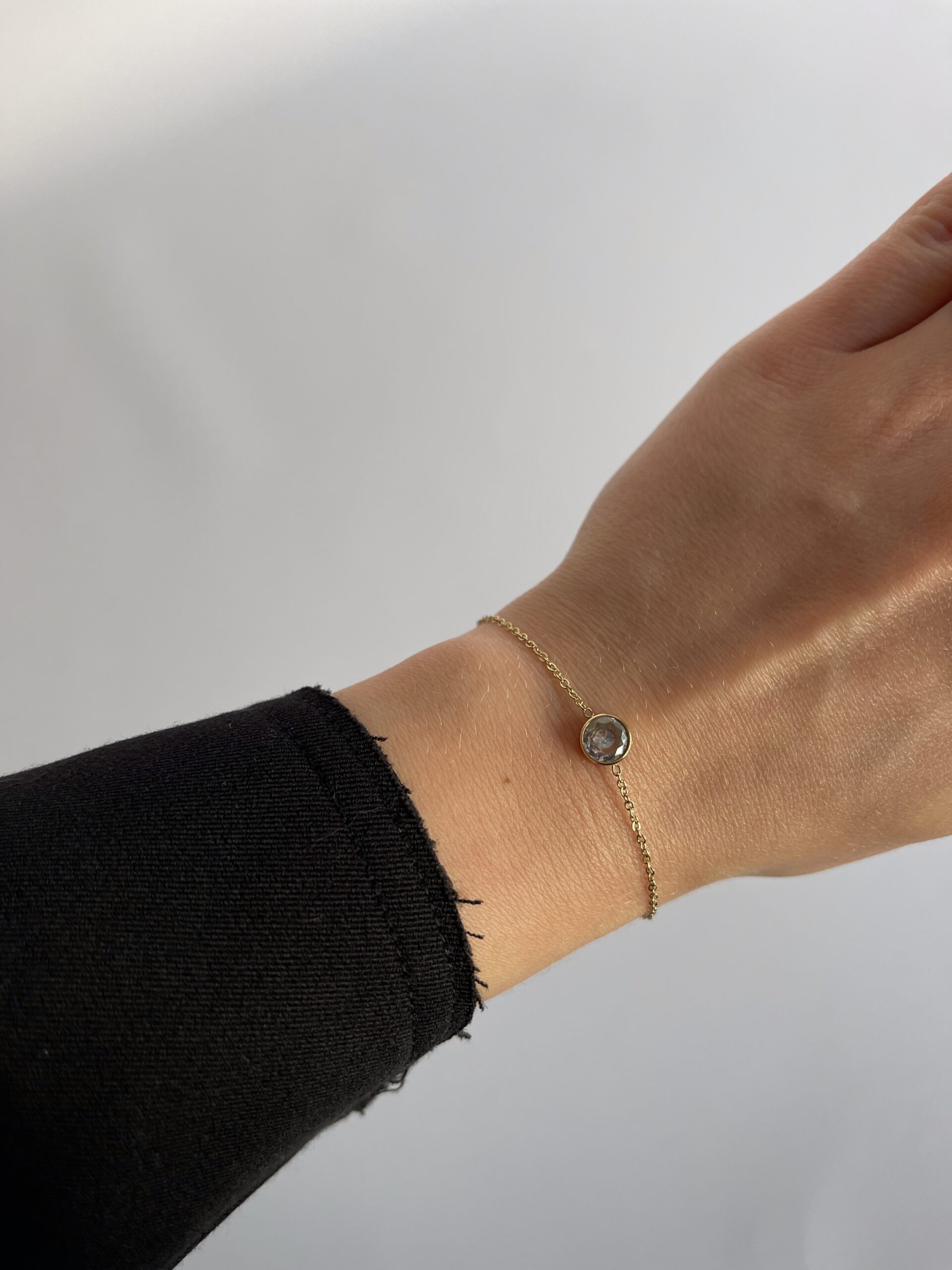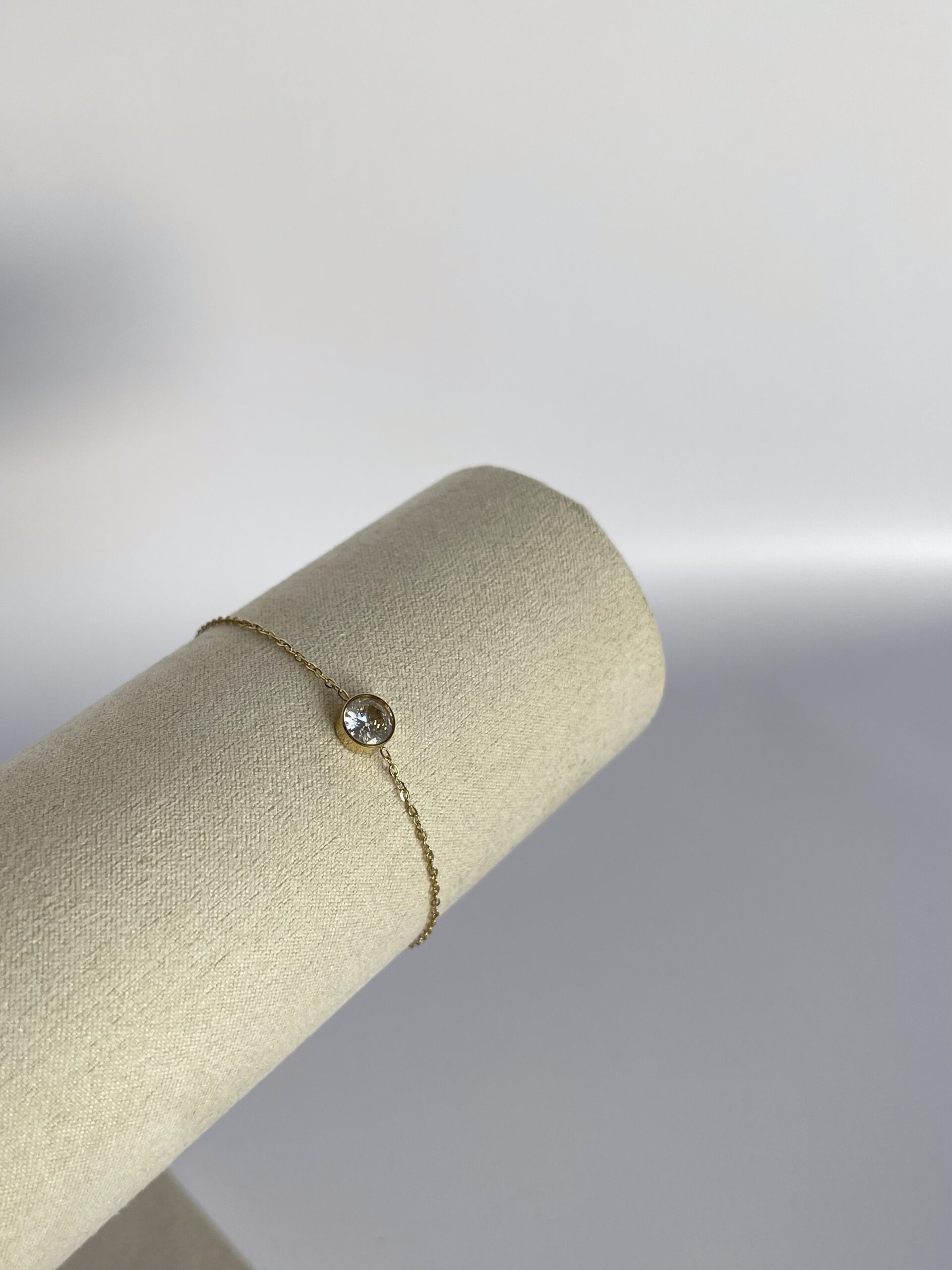 Un Done to subtelna bransoletka z pojedynczą cyrkonią – czysta forma z błyskiem, który przyciąga spojrzenia.