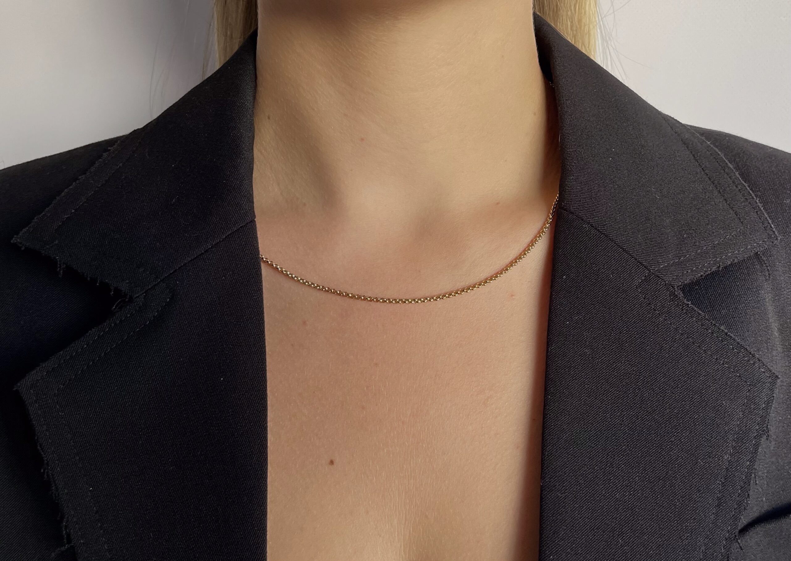 „Brezzy” to naszyjnik zbudowany z drobnych, kostkowych ogniw, które tworzą efektowną, ale lekką całość.