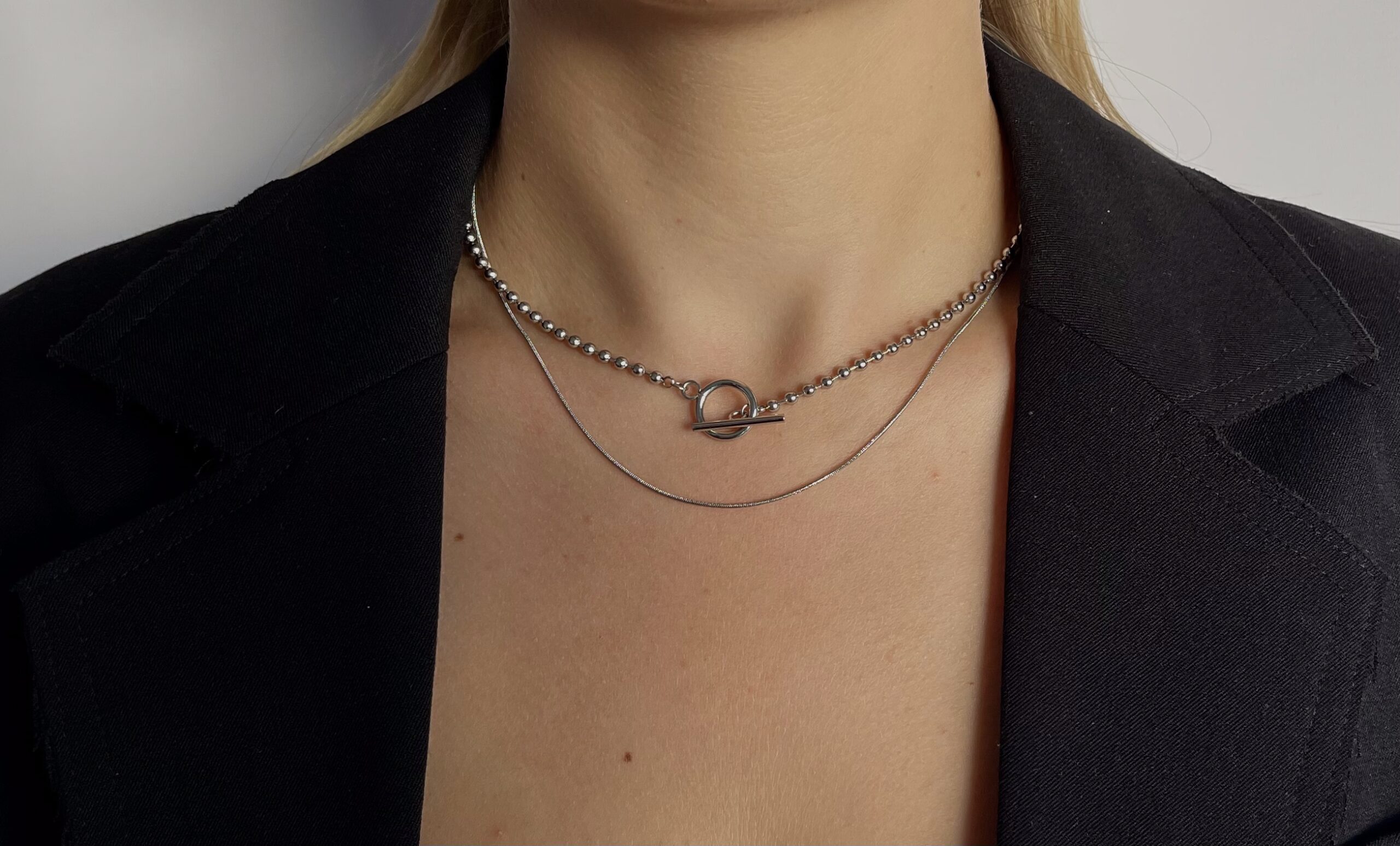 „Frozen in Orgasm” to naszyjnik, który łączy delikatność z intensywnością – dwie warstwy, dwa nastroje, jedno ciało.