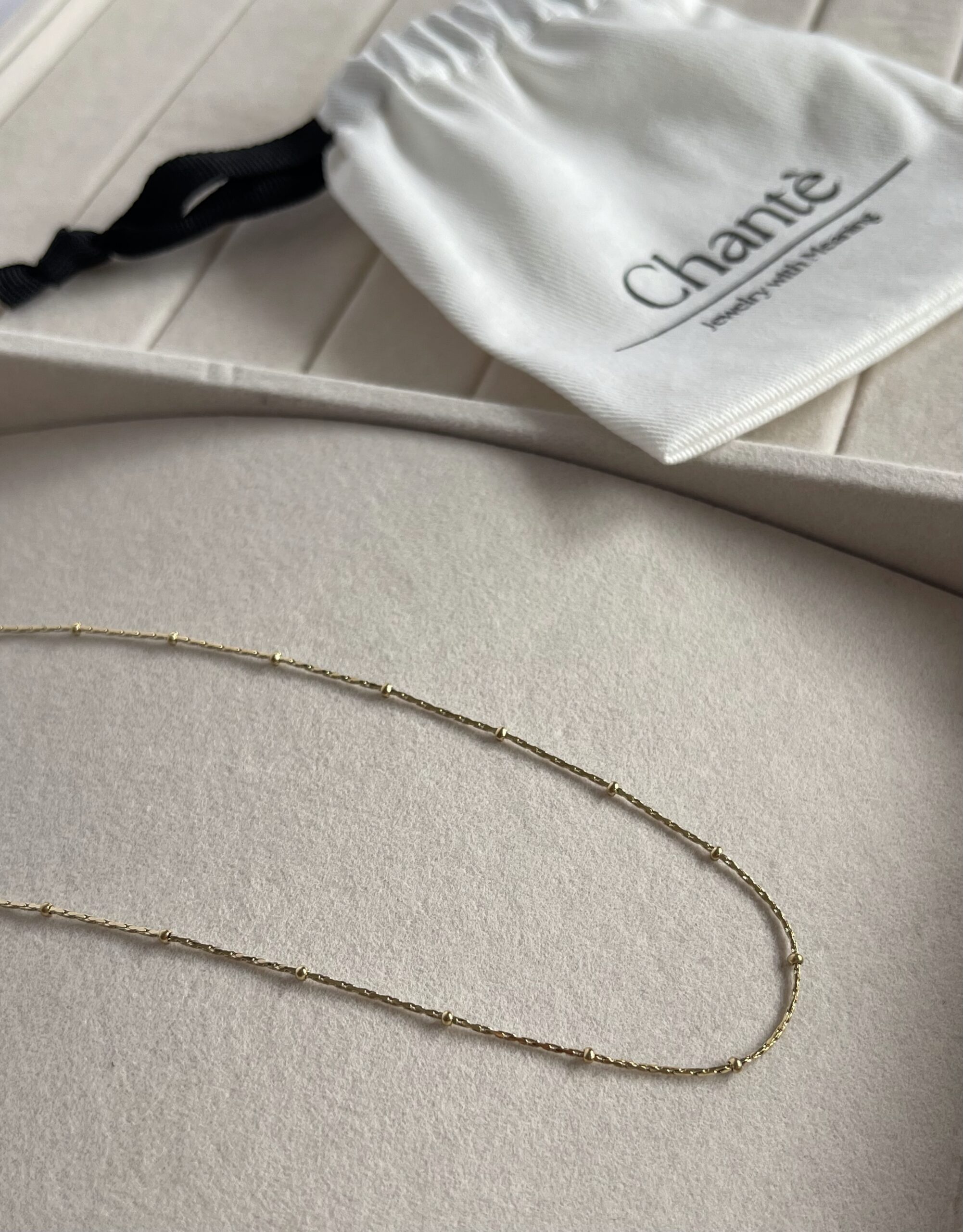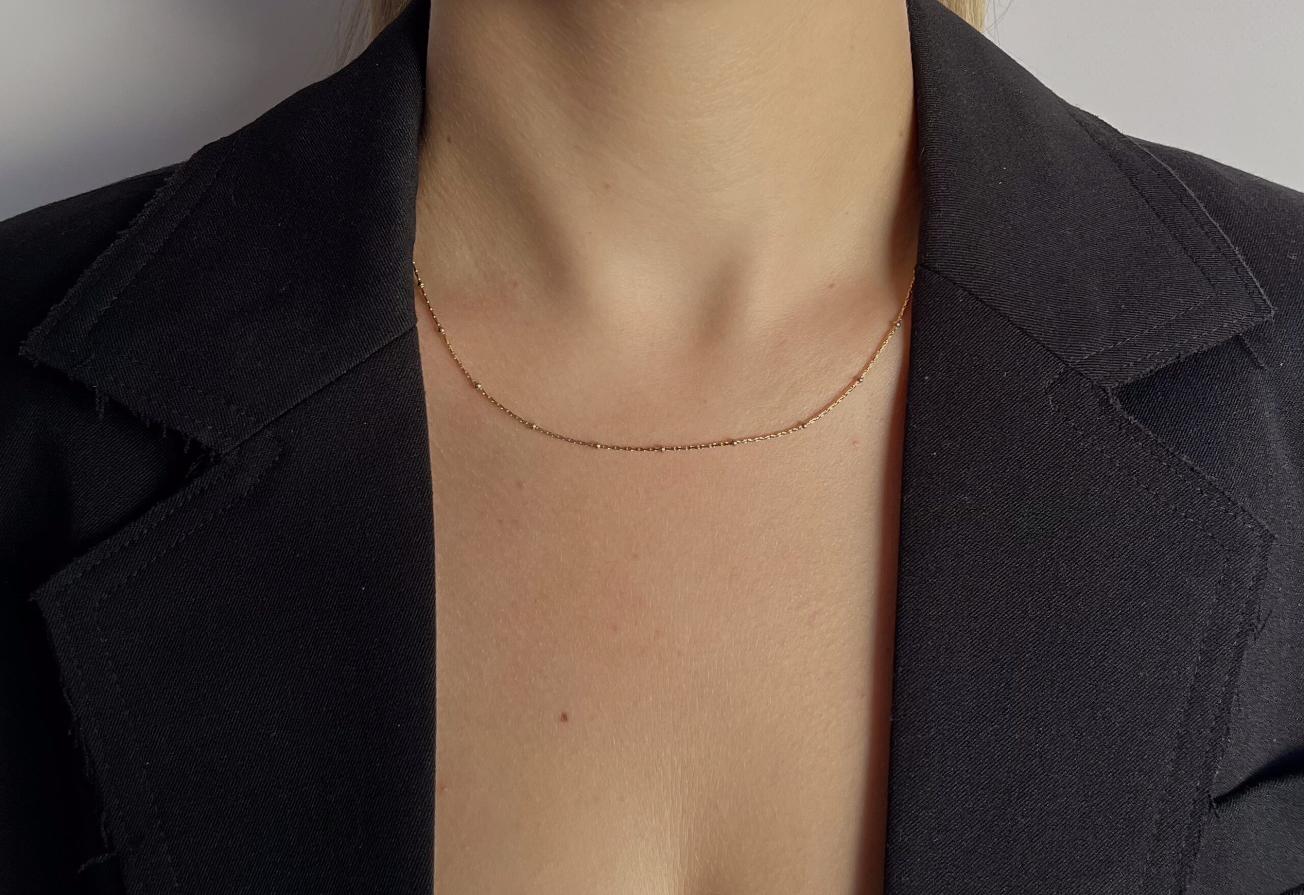 „Shiver” to delikatny naszyjnik z drobnymi kuleczkami, które układają się na skórze jak szept.