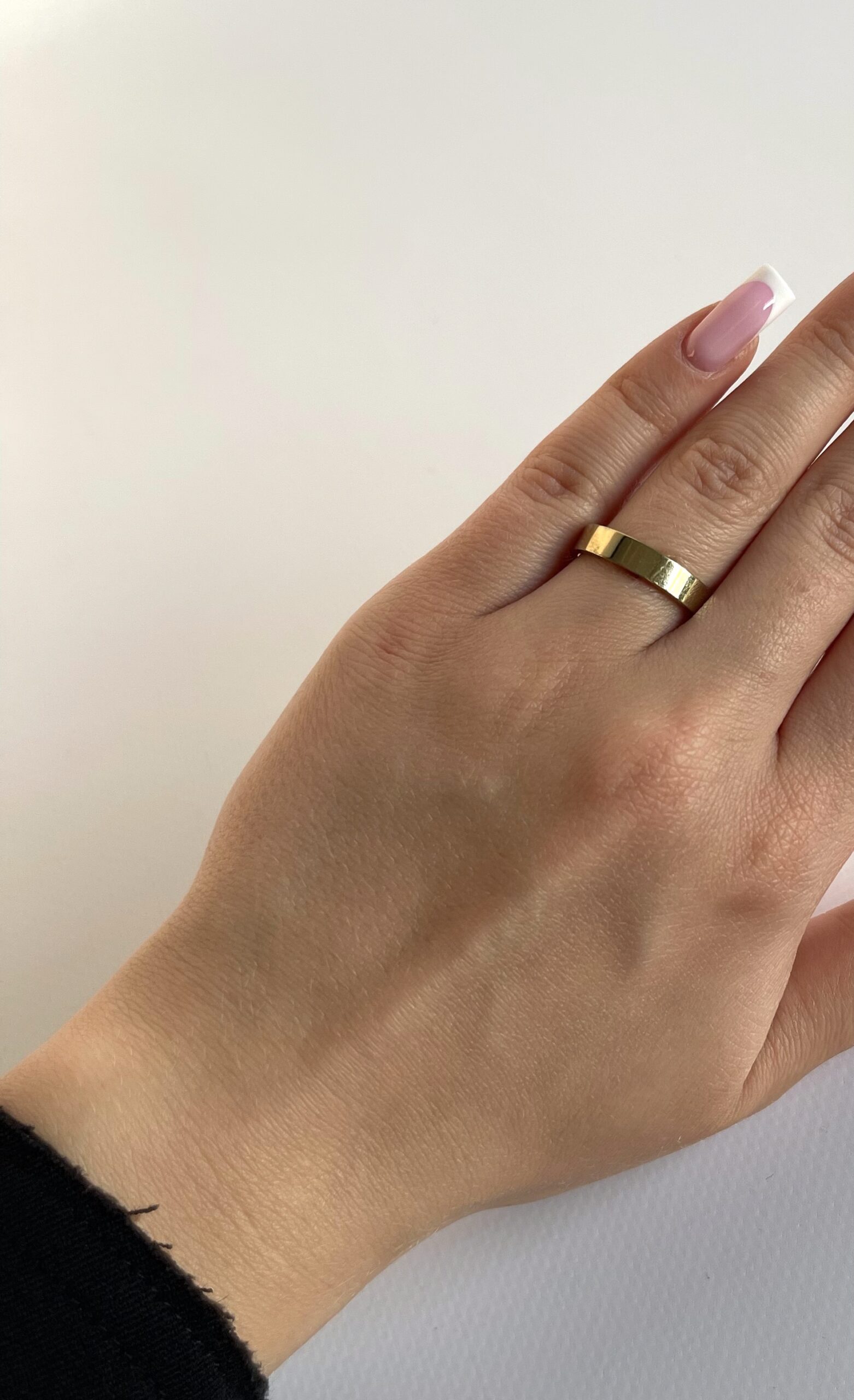 „Nude Glint” to minimalistyczny pierścionek o formie złotej obrączki – prosty, gładki i pełen blasku.