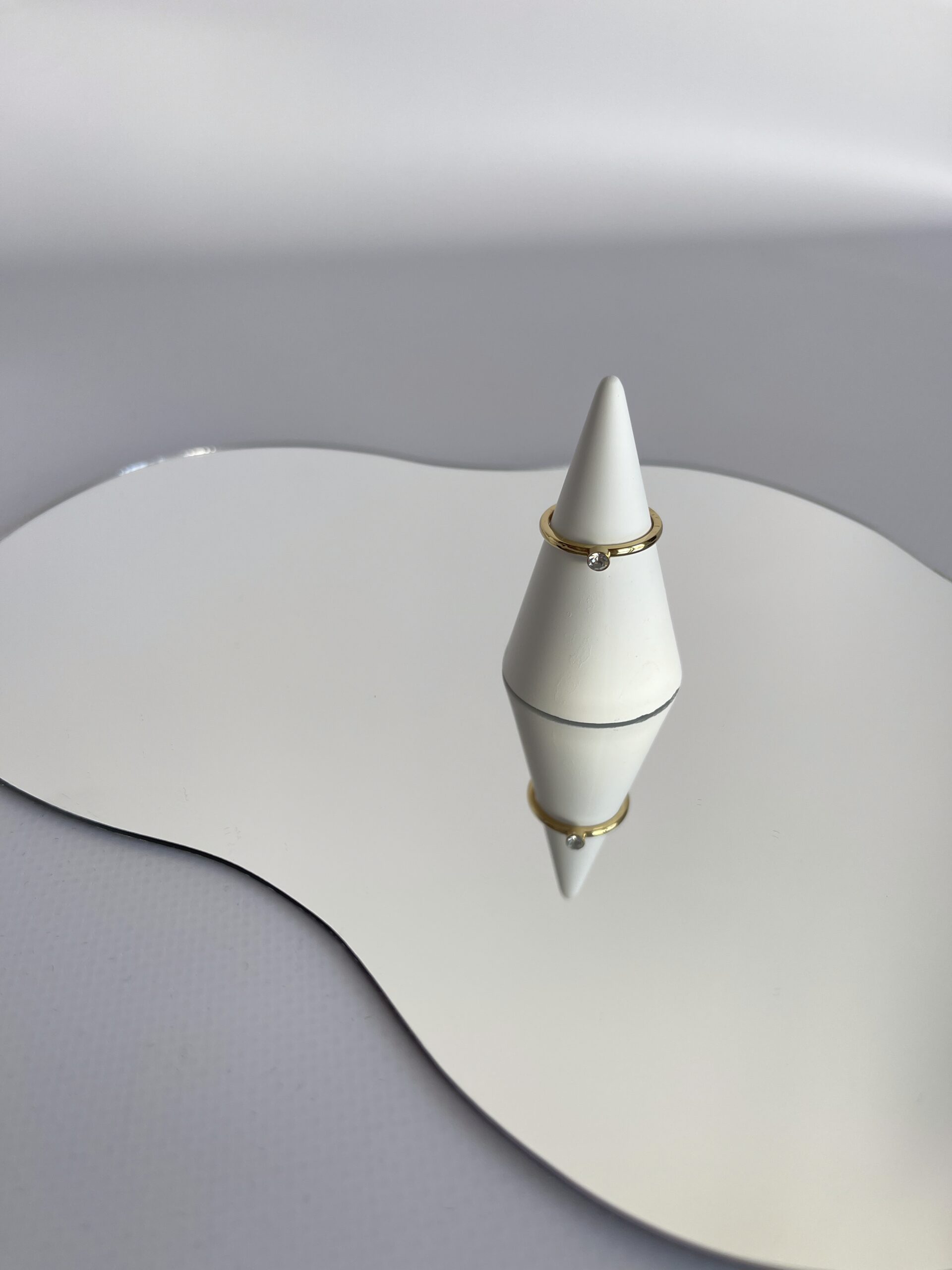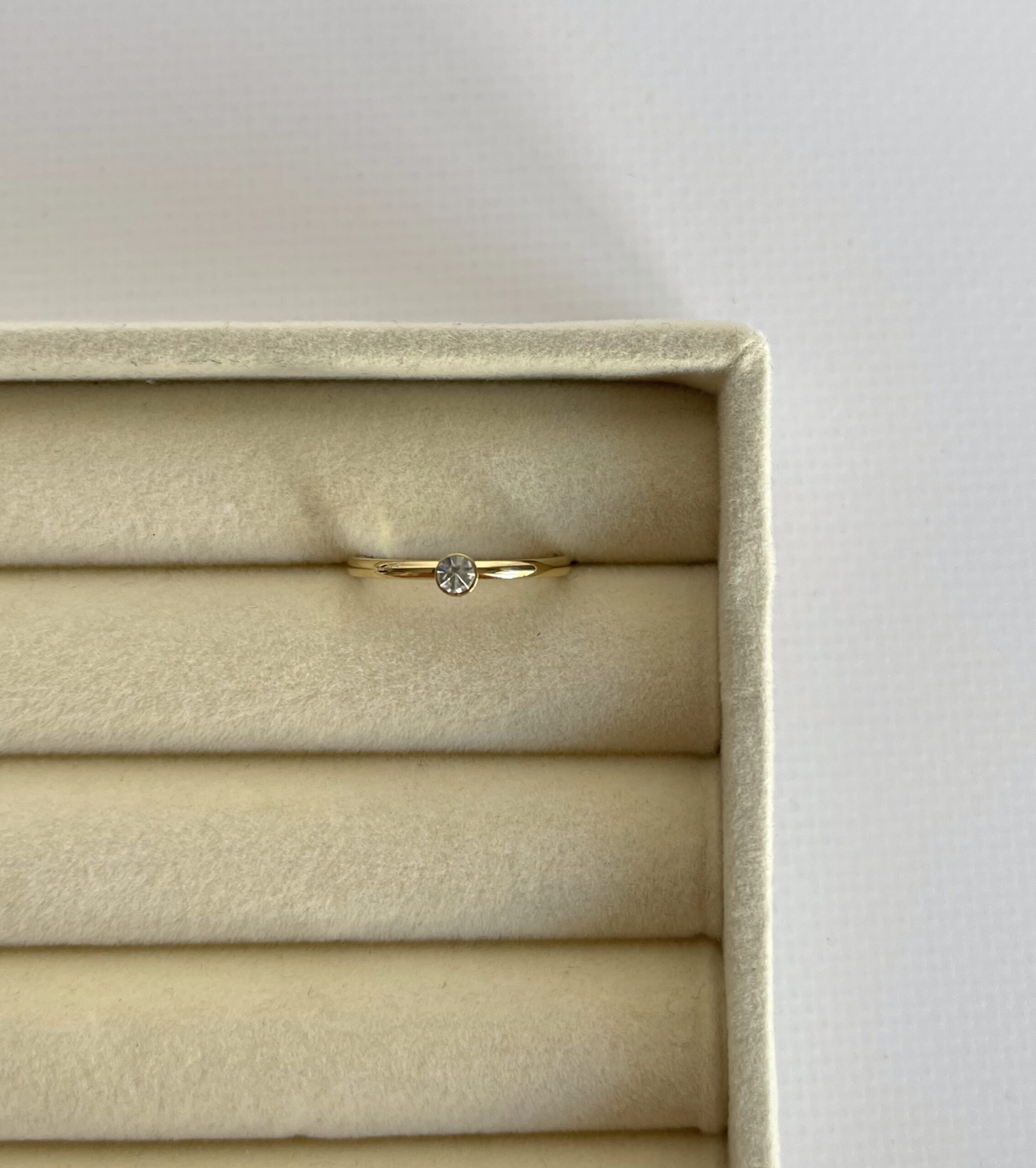 „She Now” to pierścionek z subtelną cyrkonią, osadzoną w minimalistycznej formie – błysk uchwycony w najczystszej prostocie.